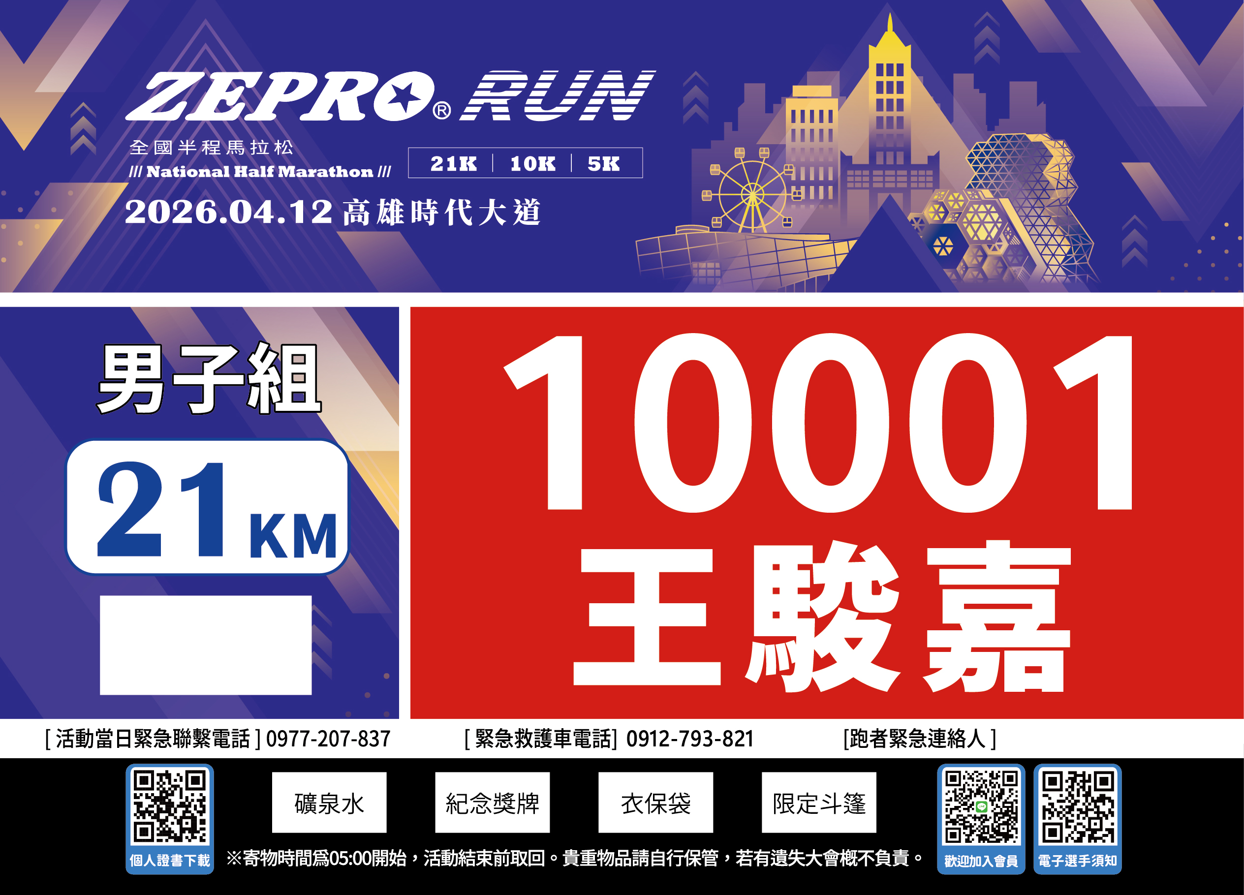 | 活動名稱 | 2026 ZEPRO RUN全國半程馬拉松:高雄場 |