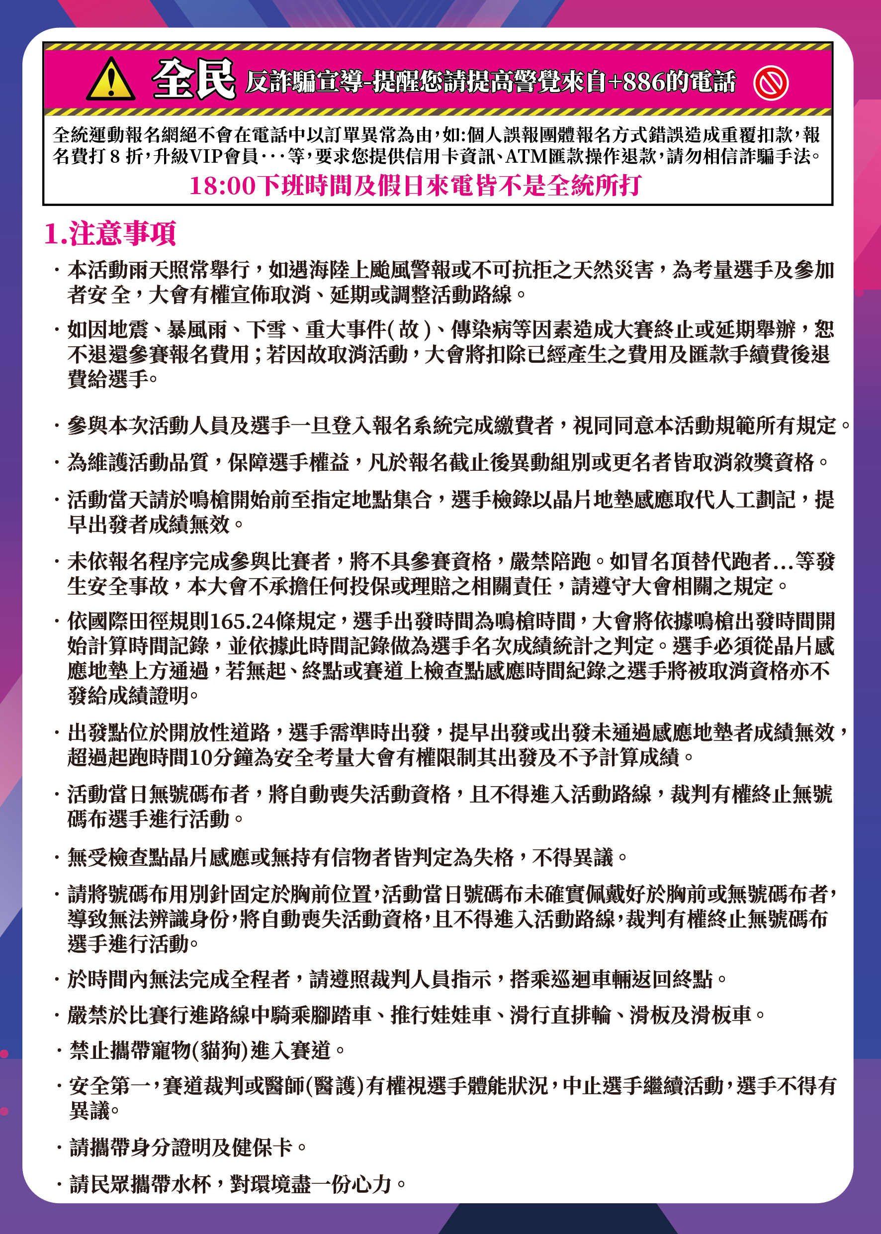 - 收到物資,確認號碼布,請掃描號碼布上的QRcode,可以確認選手須知。