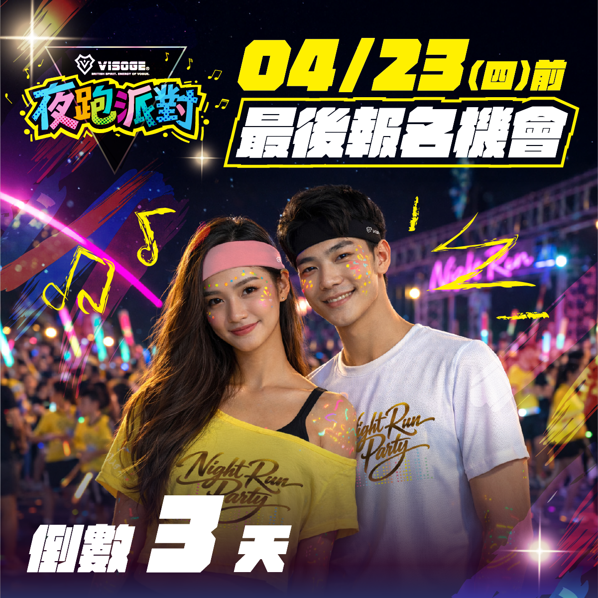 整天開會、盯著螢幕用AI、說著該說的話、規律的煮飯、無聊的獨自運動——你上一次真的嗨起來,是什麼時候?VISOGE 夜跑派對就是解悶新出口:這晚不追速度也不追AI的答案,只追那個讓你整個人炸開的感覺。不用想工作、看通知、也不用表現得很正常。就跑,就嗨,就讓音樂把你整個人帶走,用有氧健身燃爆你的熱血DNA,電音 DJ 炸翻全場不斷電,夜光彩繪讓你全身發光,千人夜光賽道讓幾千個同樣需要放電的人,在同一個夜晚一起爆發——跑完派對繼續,這個夜晚你不會想讓它結束。I人都想去了,你還在等什麼?一起嗨!